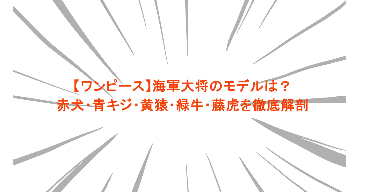 ワンピースの海軍大将は「赤犬・青キジ・黄猿・緑牛・藤虎」の5名がいます。そんな彼らにはそれぞれモデルになった人物がいると言われています。色と動物の名を組み合わせた呼び方に加え、実際の俳優がモチーフとなった背景は多くの読者を惹きつけてきました。さらにセンゴクのモデルのように確定と推測が入り混じる例や、ワンピースの原作者が死亡したという噂の原因と混同される話題も存在します。